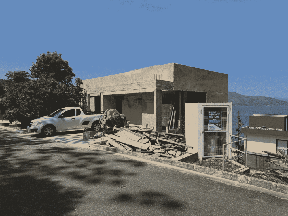 Casa em construção, no condomínio Villas 88 no bairro Camorim Pequeno, a 40 metros da areia da praia. Condomínio de alto padrão com praia e segurança 24 horas por dia. Lote com fundação pronta e projeto aprovado com todas as licenças concedidas em 2023 e energia ligada. Projeto com 4 suítes, salão, 6 banheiros e tudo que uma casa de frente para o mar e vista permanente necessita. Oportunidade para quem quer comprar e iniciar a construção imediatamente. Projeto com cálculo estrutural, hidráulico e elétrico, tudo prontinho. Oportunidade única em Angra dos Reis.